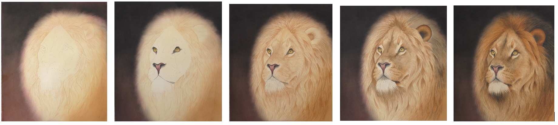 Learn to paint the rich dark background along with this lion. A self-guided, video course to complete at your own pace from drawing to finished painting! You can do this!